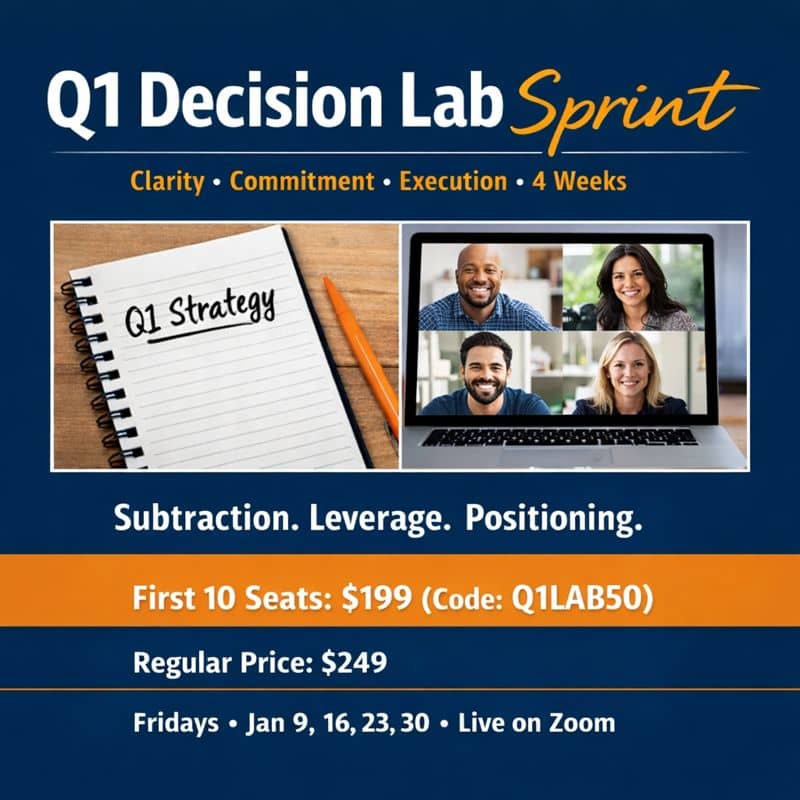 The three strategic agreements you make in Q1. The Pivot Point. Weekly strategy for high-performers building depth of excellence through better decisions, clearer positioning, and stronger execution. Supported by Rize.io (partner) Strategy needs a feedback loop. I use Rize to track my real patterns (not intentions) so I can build better habits—and protect depth of excellence. Most coaches start January with intentions—things they’d like to do, plan to do, hope will happen. By February,...